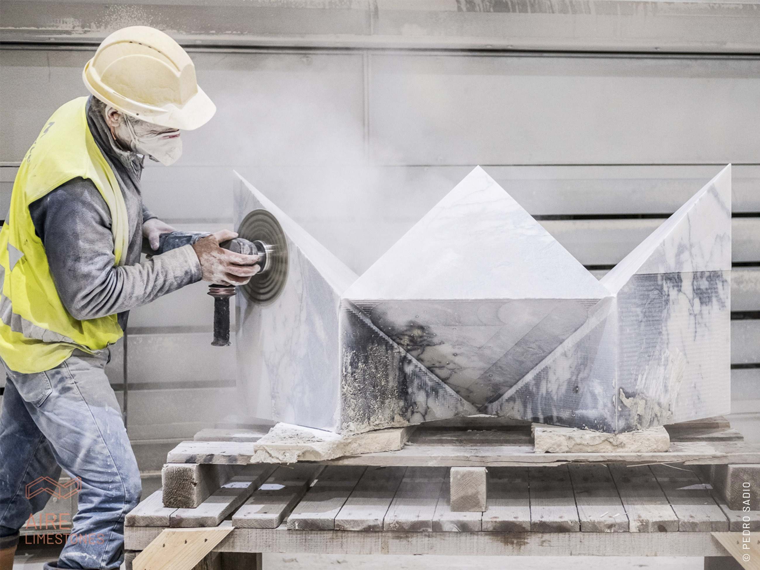 This object is formed by the deconstruction of a large block of marble into a complex set of smaller pieces. The entire shape is inspired by the calcite crystal structures that compose the rock and give it its resistance.