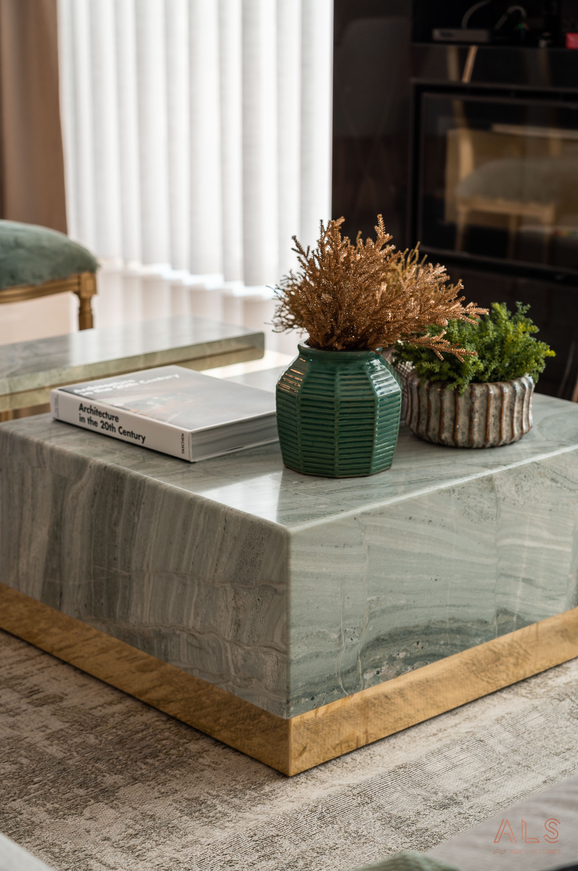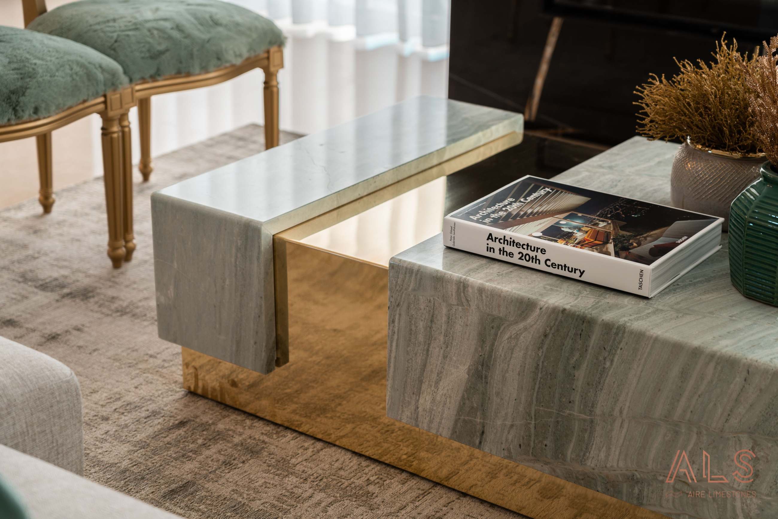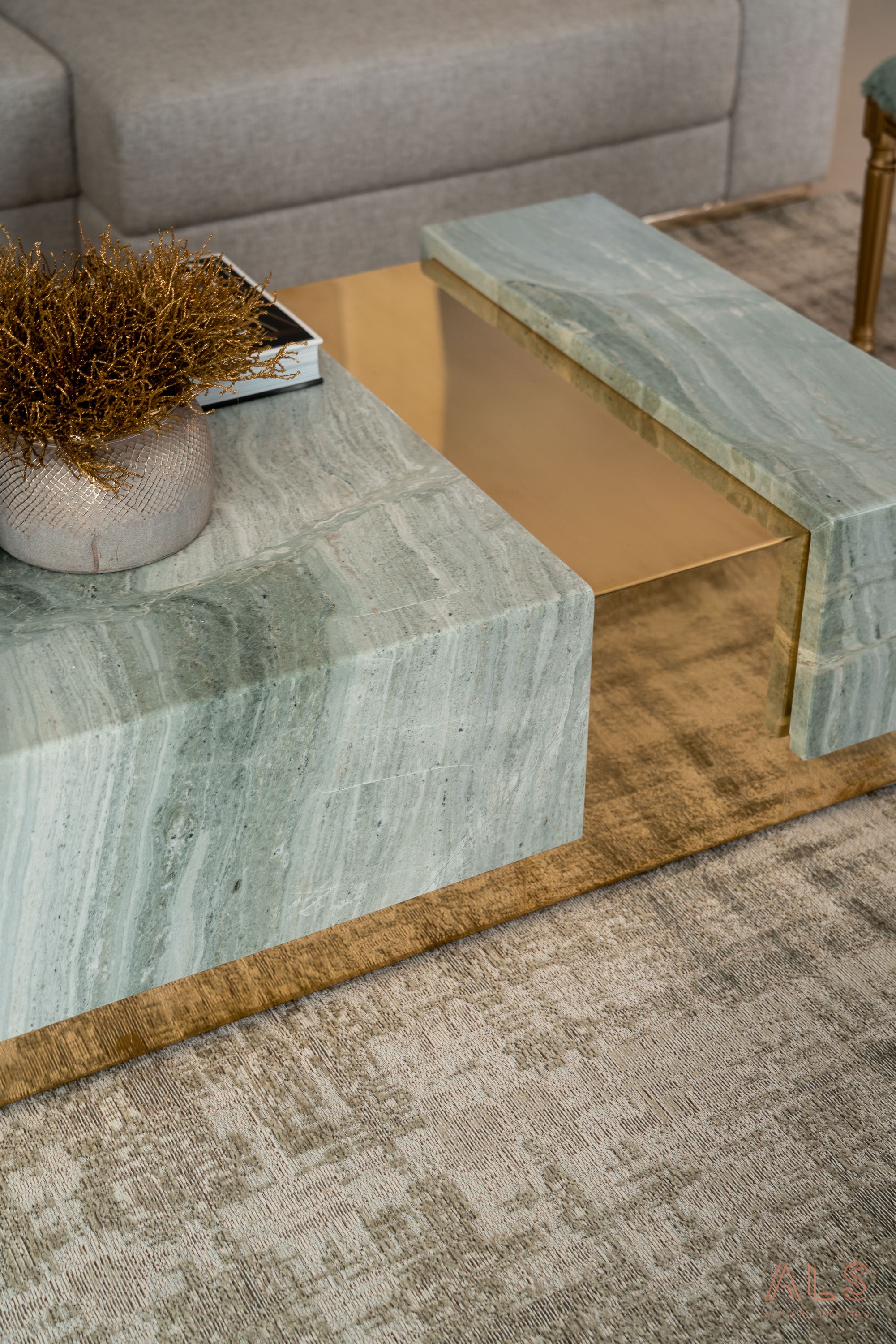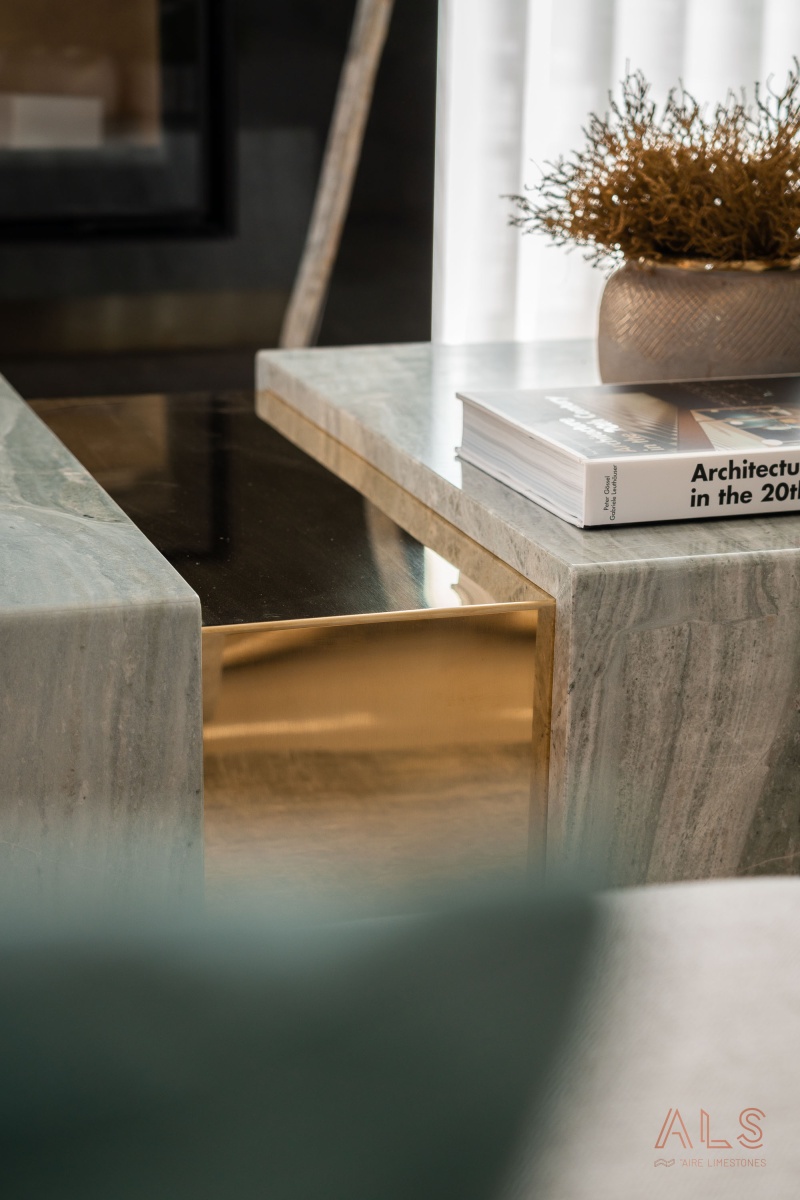 Much more than a simple table, the "Timeless Table" is the timeless expression of yet another project created by Patrícia Carvalho, interior designer. The perfect combination of gold and Verde Serpa gives the piece a unique personality, with unique veins that gently dance to the rhythm of a melody.