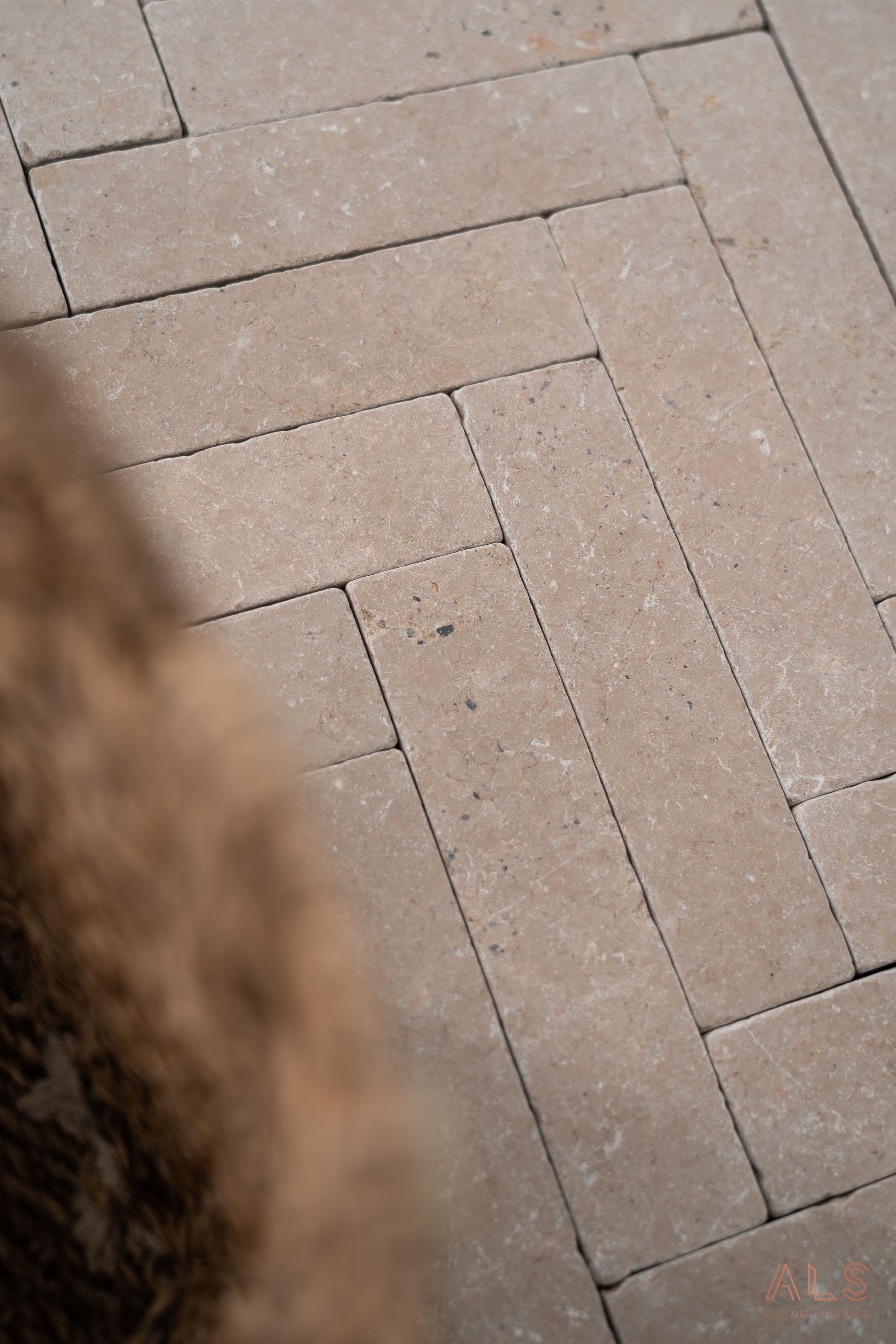 O chão em espinha é um padrão muito elegante utilizado em todo o mundo.O Brownie é uma pedra calcária muito utilizado para chão devido à sua durabilidade.Pedra: BrownieAcabamento: Tumbled2023