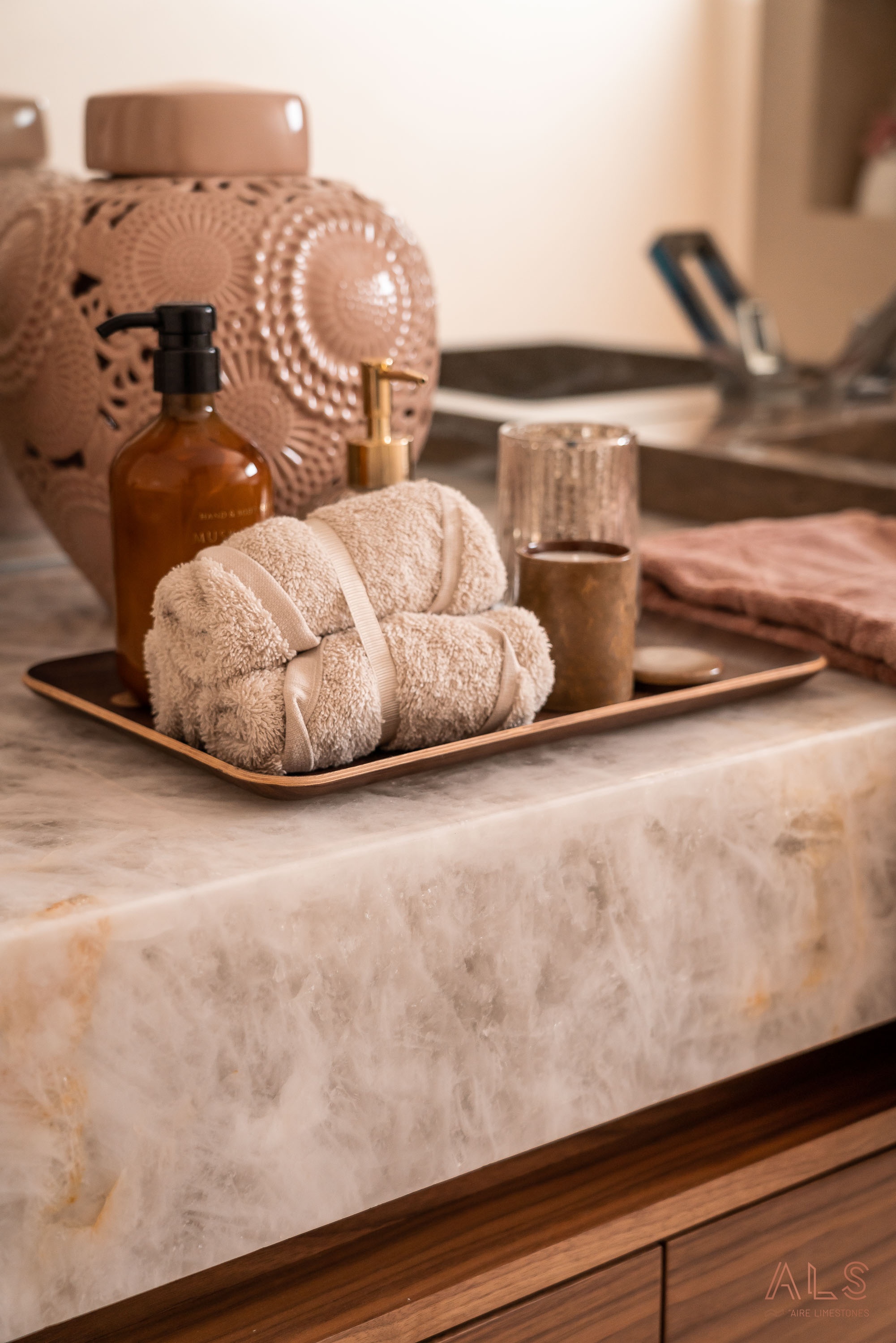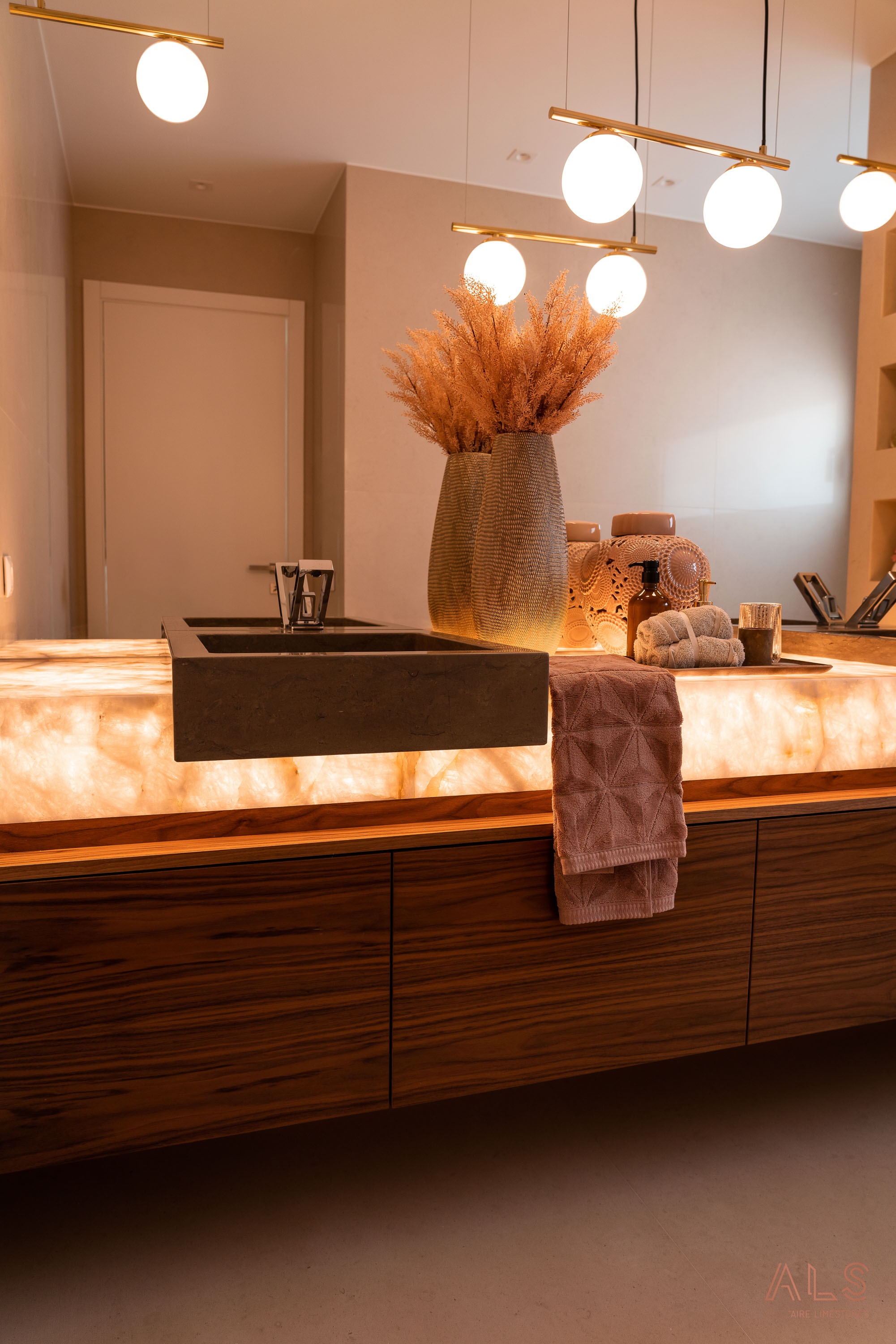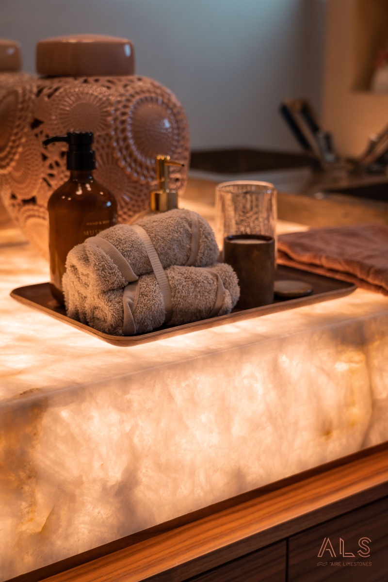 • Impressionante efeito da pedra natural Onyx.
